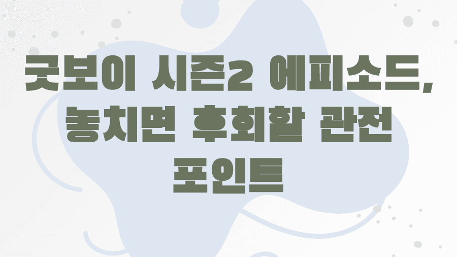시청자들은 이러한 에피소드별 감상을 통해 프로그램의 깊이를 더하고, 출연진들의 숨겨진 매력을 발견하는 즐거움을 누릴 수 있습니다. 굿보이 시즌2 다시보기를 통해 놓쳤던 장면들을 다시 확인하며 에피소드의 재미를 배가시키는 것도 좋은 방법입니다.
